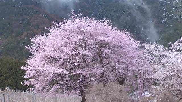 > Cherry blossoms in full bloom