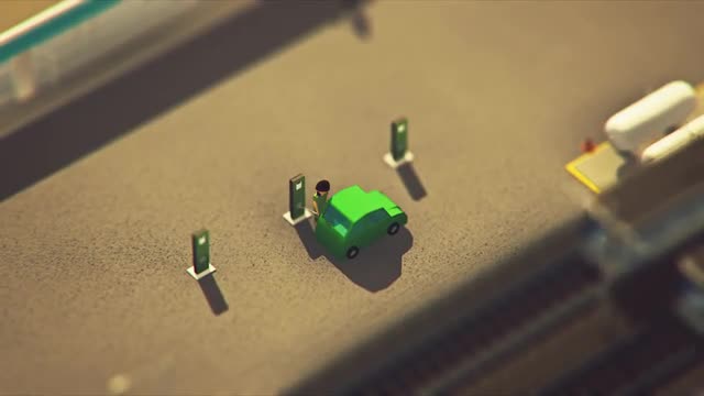 304302 - Aerial View Of Cityscape. Electic Car Charging