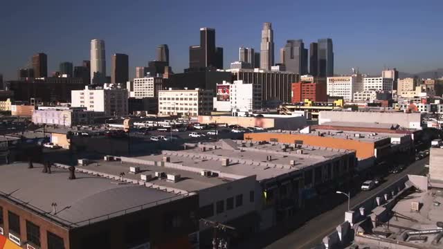 57957 - Far shot of Los Angeles skyline.