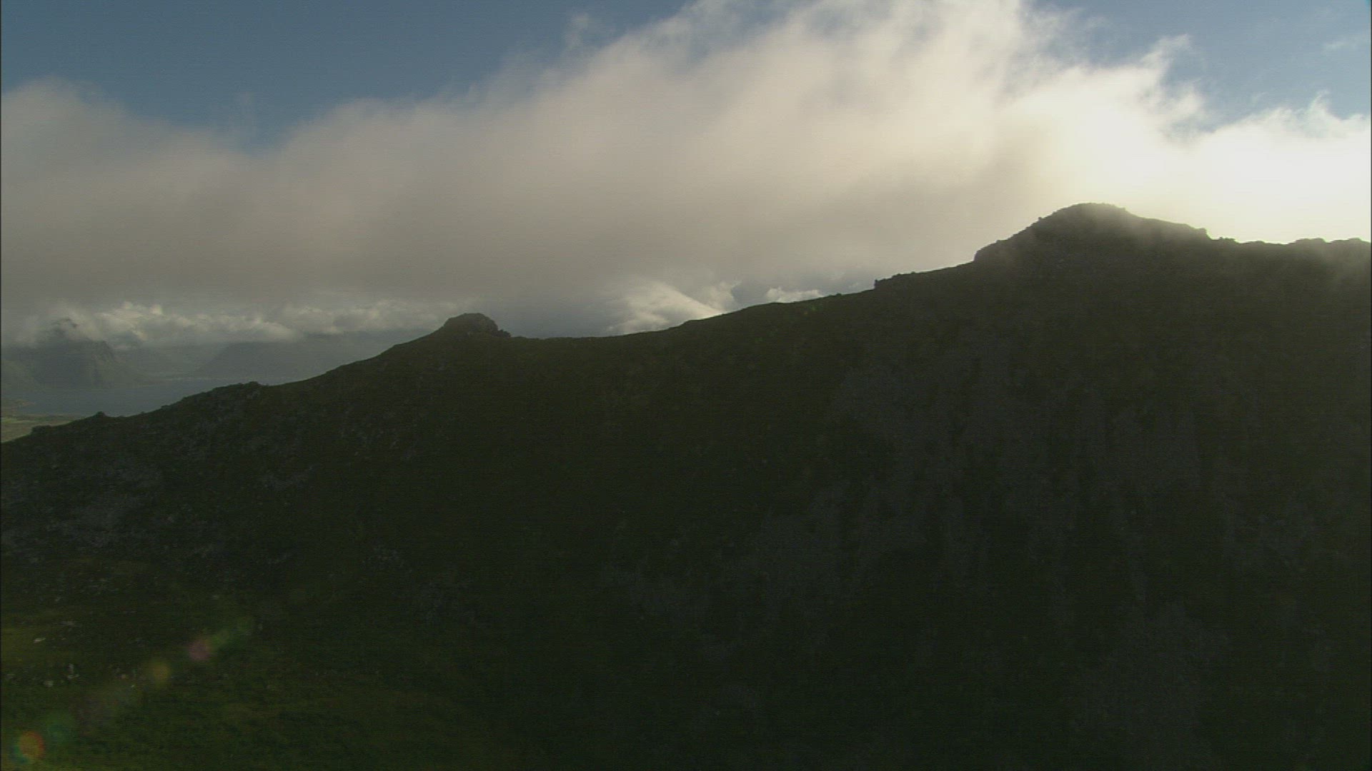 This was shot in Lofoten and shows fog and mountains being reflected in a lake.