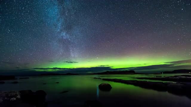 This 12 second video starts of with stars and weak northern lights (Aurora Borealis), until it gets to the 6 second mark, where the intensity of the northern lights increases.