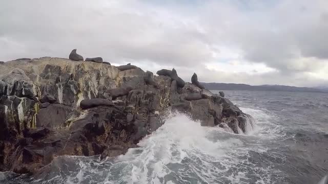 > Group of Marine Seals Lie on the Islet From the Stones. Argentina, South America.