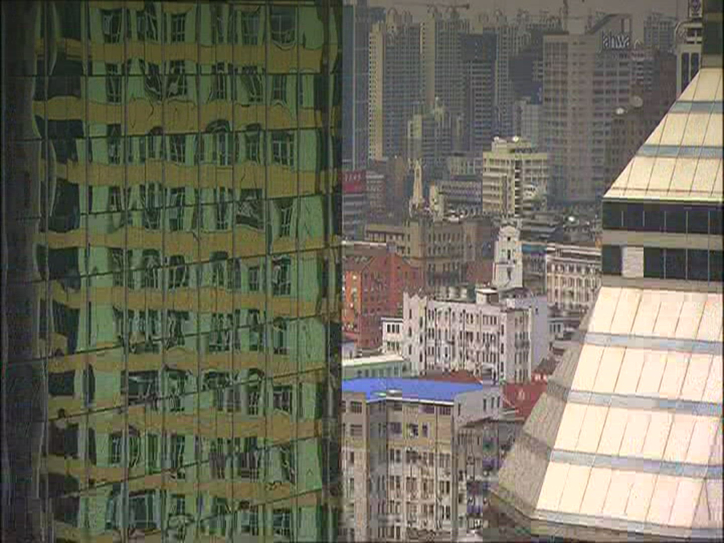 Sun reflecting on the skyscrapers glass facades.
