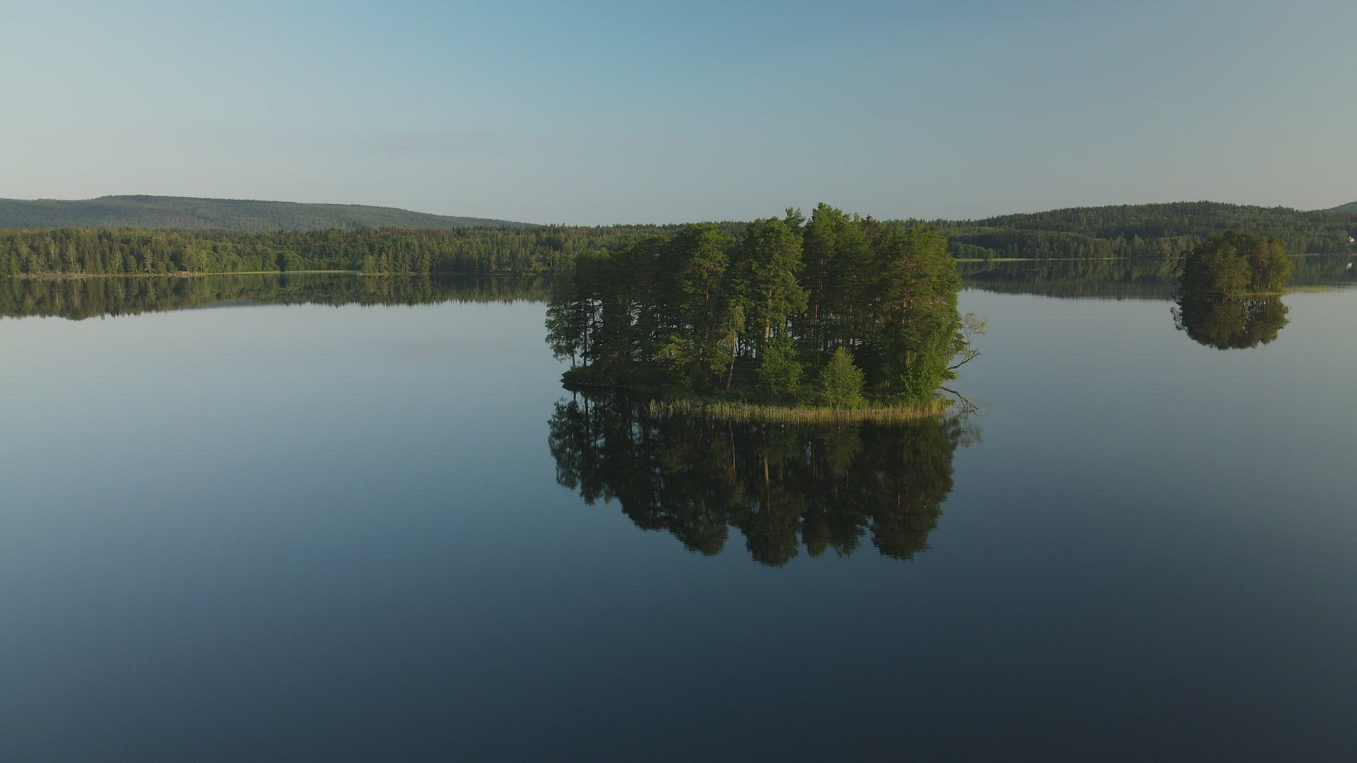 > Aerial Flythrough of Beautiful Blue Lake and Forest