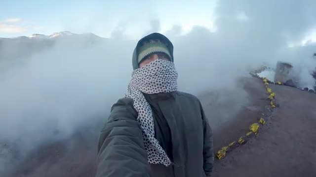 > Steam From Geysers. Valley of Geysers and Hot Springs, Atacama Desert, Chile