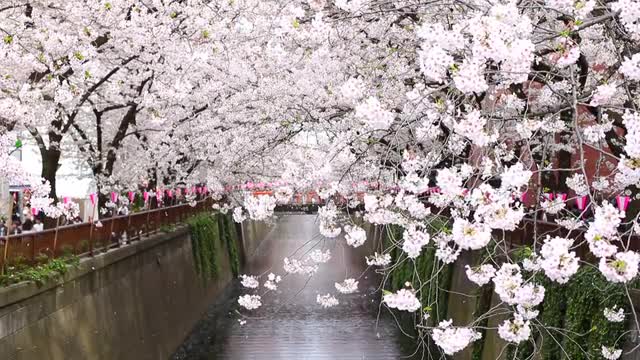 > Cherry blossoms at Meguro river, Tokyo, Japan