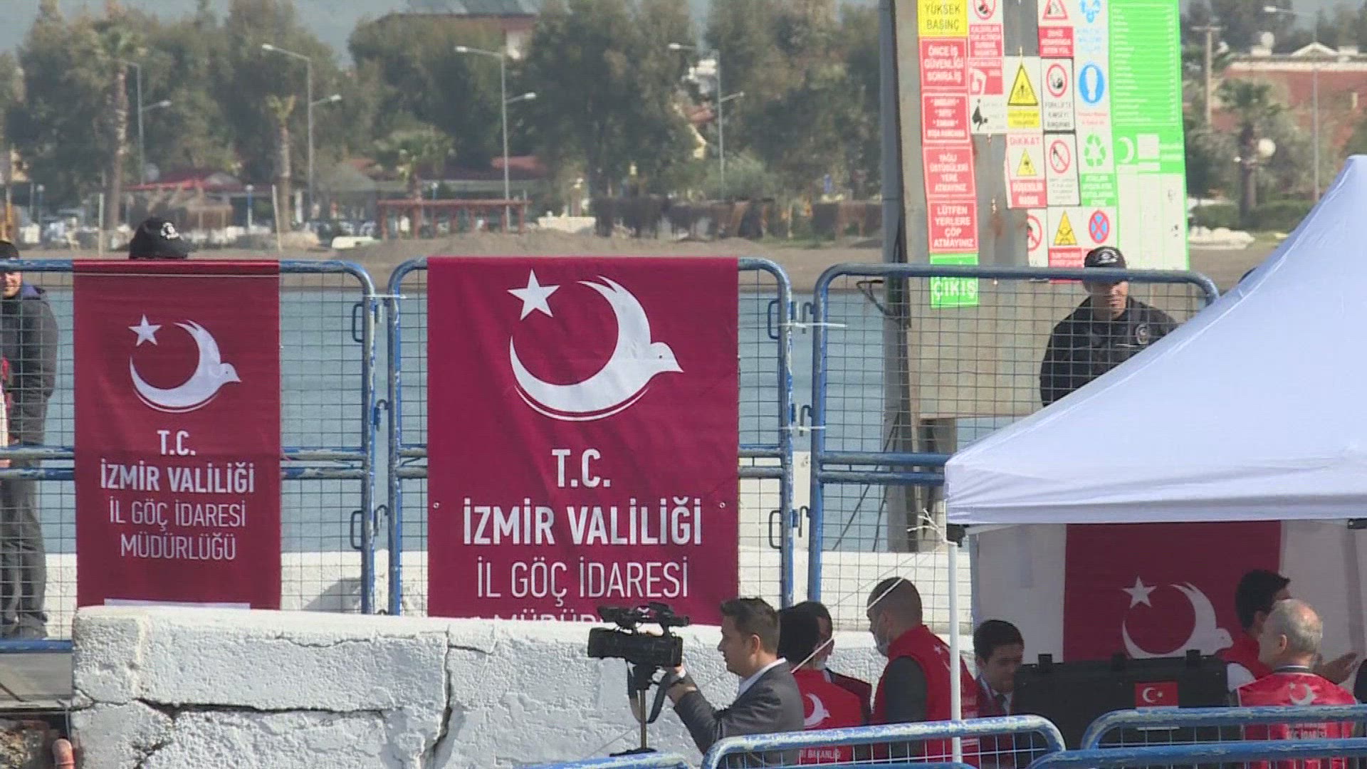 > Turkish Flag and Ferry Boat at Golden Horn Bay of Istanbul