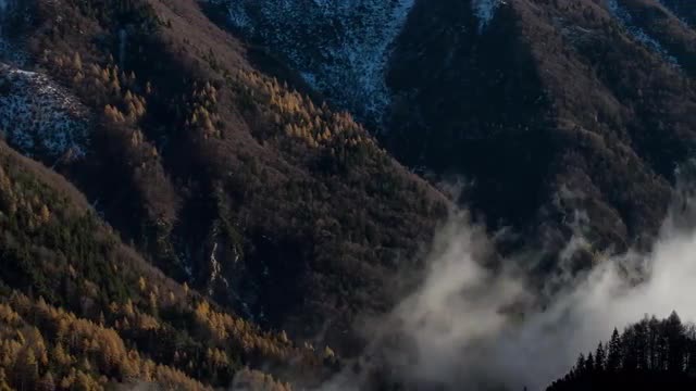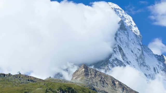> Time lapse of a mountain ridge in the clouds