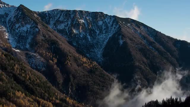981711 - Zoom-out timelapse shot of cloud formations over snowy peaks, Monte Stivo, Alps, Italy, Europe
