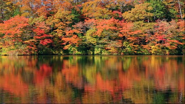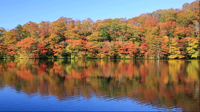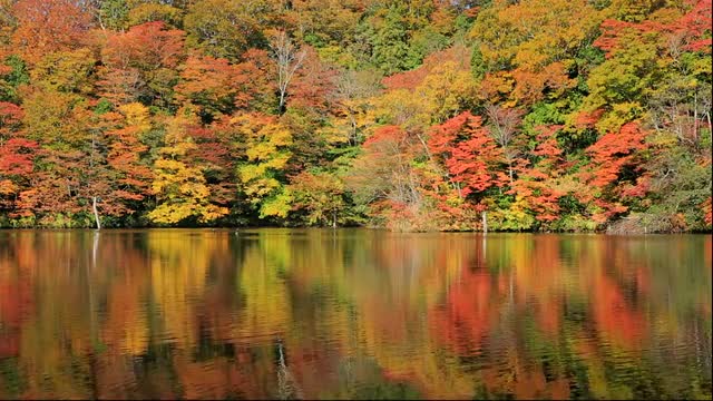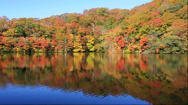 Autumn leaves at the Juniko Lakes in the Shirakami Sanchi World Heritage area in Aomori Prefecture