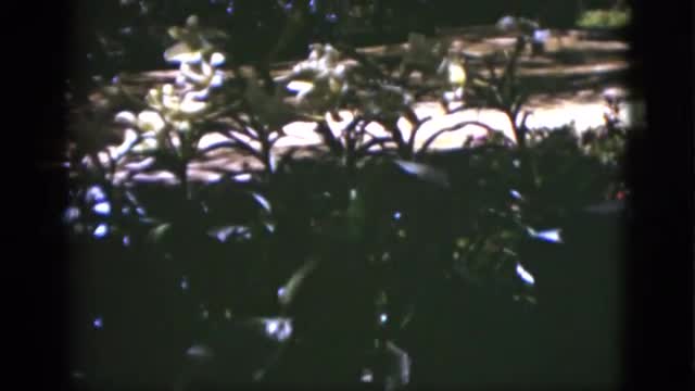 642728 - 1951: flowers, vegetables and fruit are growing in a garden with lines of tomatoes and other kinds o