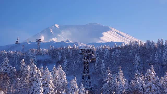 > Snow at Suribachi Pond of Daisetsuzan and Mount Asahi, Hokkaido, Japan