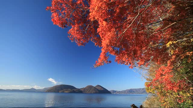 Autumn view of Onuma Park and Koma-ga-take at dusk, Hokkaido, Japan