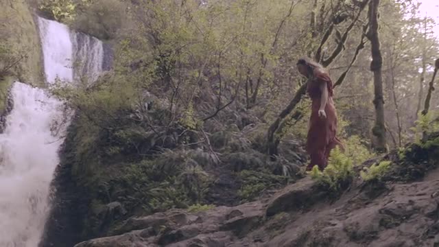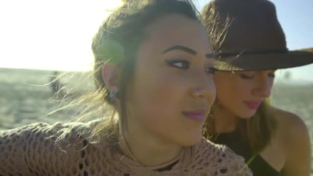 601961 - Wide shot girl walking through sand dunes