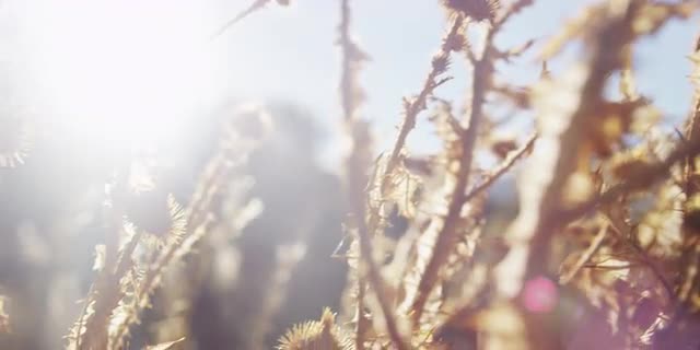 77732 - Morning flare through thistle bush.