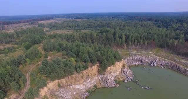> Flooded stone quarry in the woods of Eastern Europe
