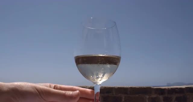 673695 - Woman and man hands are clinking glasses of champagne on sunset sea background, close up view