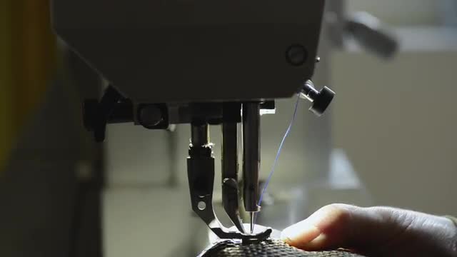 CU Craftsperson working at leather sewing machine / Breda, Noord-Brabant, Netherlands