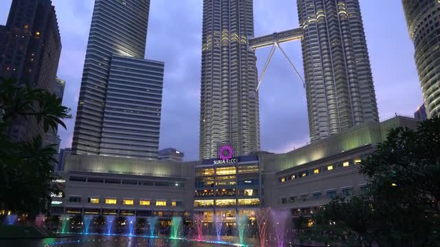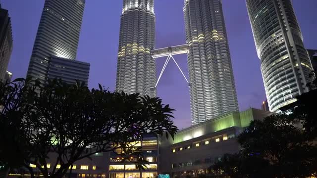 4k B-roll footage of Petronas Twin Towers, Kuala Lumpur, Malaysia during beautiful sunset dusk sky.