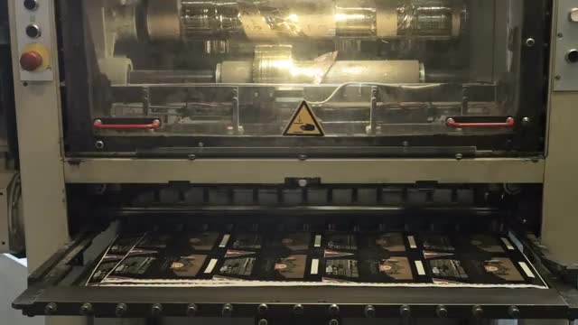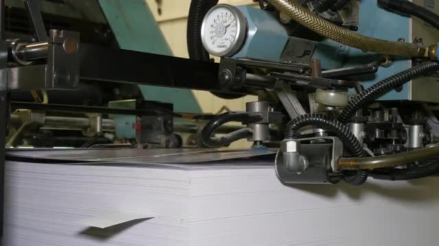 Printing roller helps to deliever sheets of paper into printing press. Printing industry, old mechanism. Seamless loop. 4K Ultra HD.