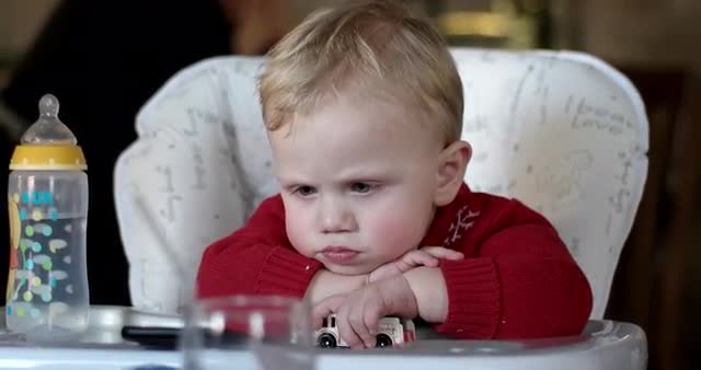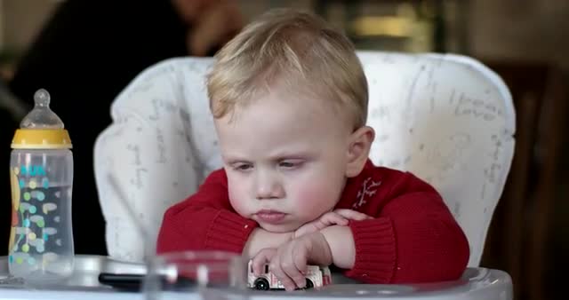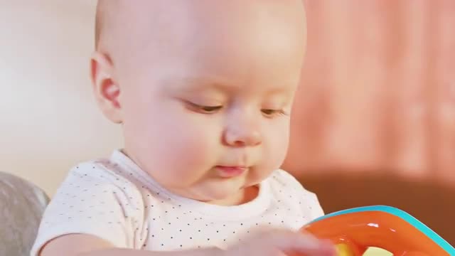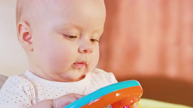Baby Boy Play and Having Fun in Inflatable Pool on Green Lawn in a Sunny Day