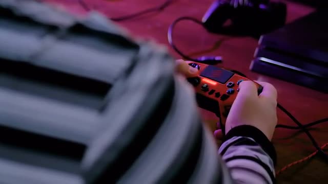 > the Large Group of Children Plays Computer Games in Salon During Competition Carrying Out "the