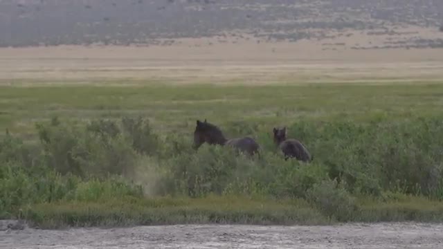 Horse With Small Foal Running on the Green Meadow. Spring Day.