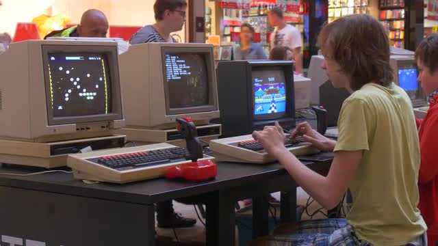 Wroclaw/poland - Jun 18 2016: the Young Guy Dressed a Yellow T-Shirt, Prints the Text on the Old Keyboard During Carrying Out of Competition of "retrocomputer Games" in Wroclaw (Poland). the Guy is One of Organizers of Competition. he Repairs the Computer at the Moment.