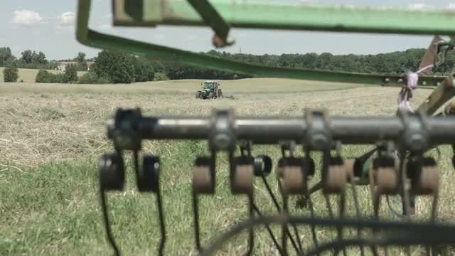 > A slider move on a Field while a Tractor is driving in the Background in 4K