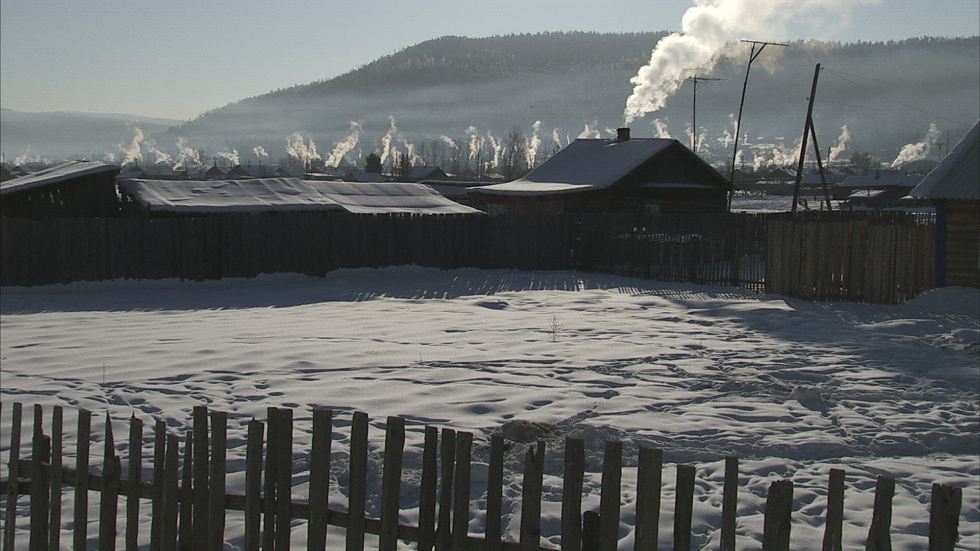 557575 - Small Rustic House at Wooden Church Wattle Fence Around Them at Wintry Landscape of a Pirogovo Villa