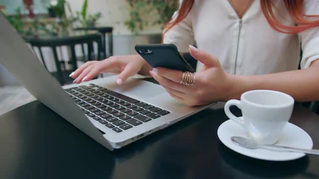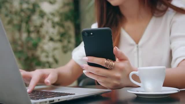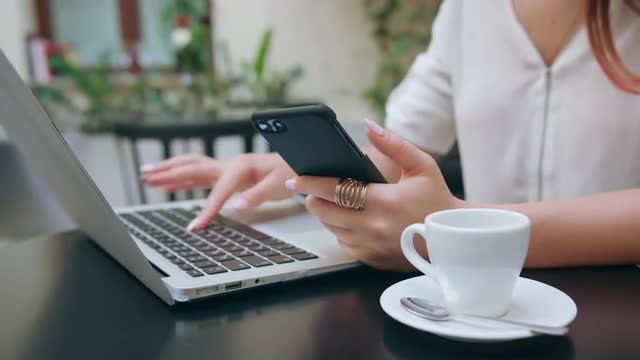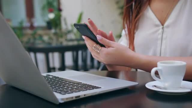 Family dinner on the balcony in late evening. People busy with smart phones and laptop, young woman taking some pictures. They dont have time to talk with each other