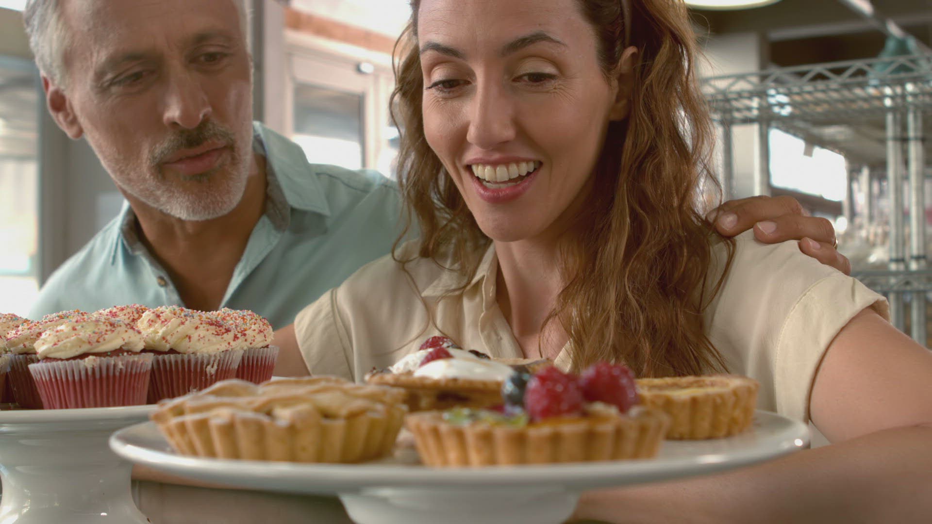 People eating desserts and drinking coffee in cafe