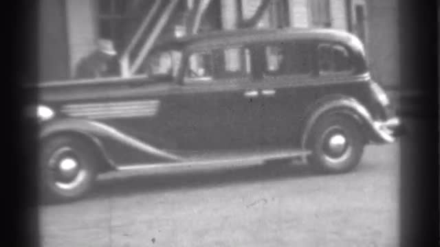 723041 - 1939: a car parking and a man at the outside come to near and talking with a person inside the car N