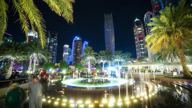 608114 - dubai marina fountain 4k time lapse
