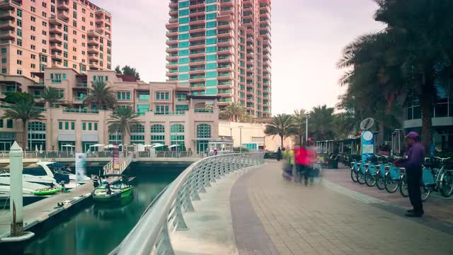 614137 - sunny day dubai city deira district bay boat parking 4k time lapse uae