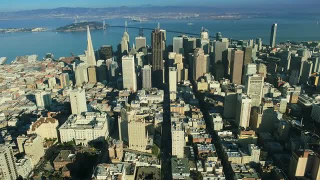 > Aerial view of San Francisco and Bay bridge America, USA