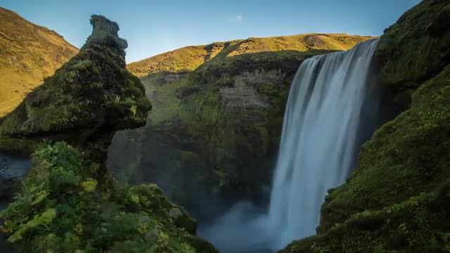 Top View of Skogafoss waterfall, Iceland. Morning light