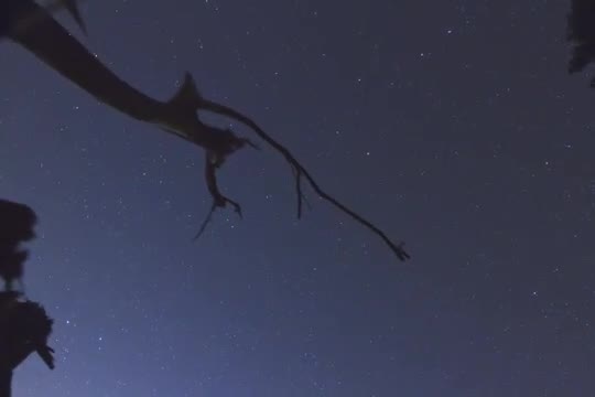 Motion Controlled Wide Angle Timelapse shot of a dark starry sky and Milky Way in a remote, light pollution free countryside. Tree silhouettes moving in the foreground.
