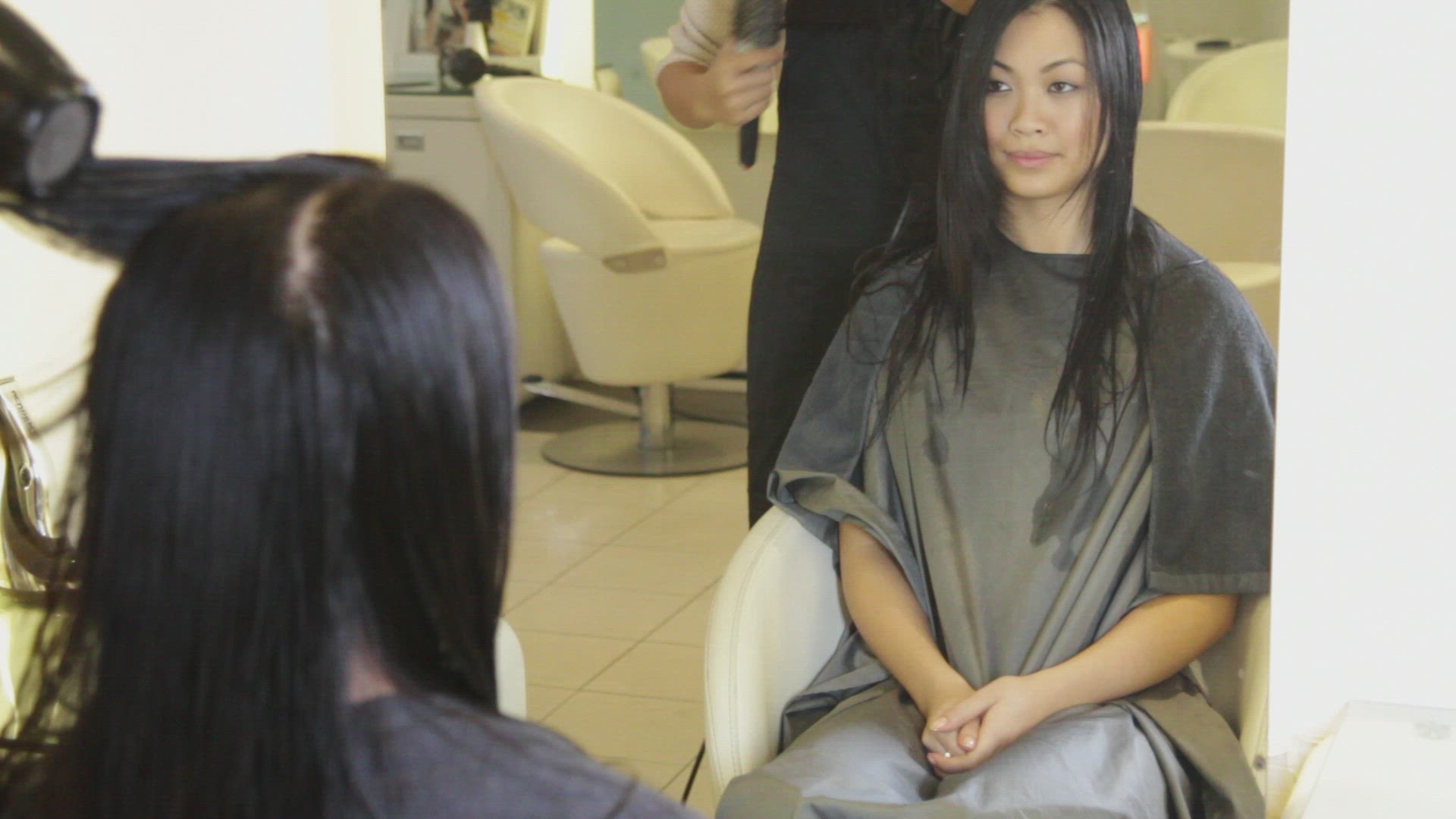 the Little Girl Has Decided to Visit a Hairdressing Salon in the Hot Afternoon. She Wants, That the Hairdresser Has Made to Her a Short Hairstyle With Which it Would be Easier to Transfer a Heat. the Hairdresser Agrees on This Condition and Immediately Starts to Work.