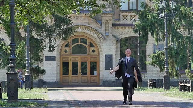 Graduand in Mantle Thinking Holding His Diploma Standing in Alley Outside the Univesrsity Inspired S
