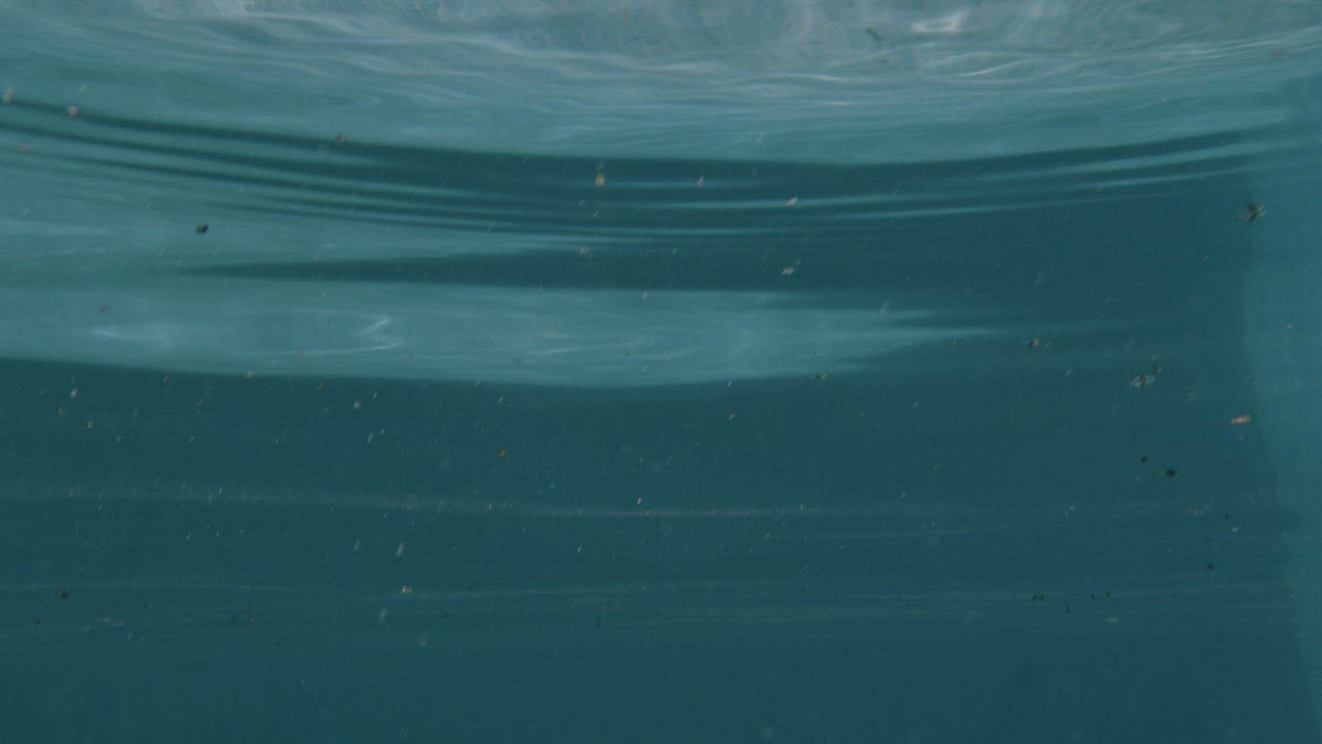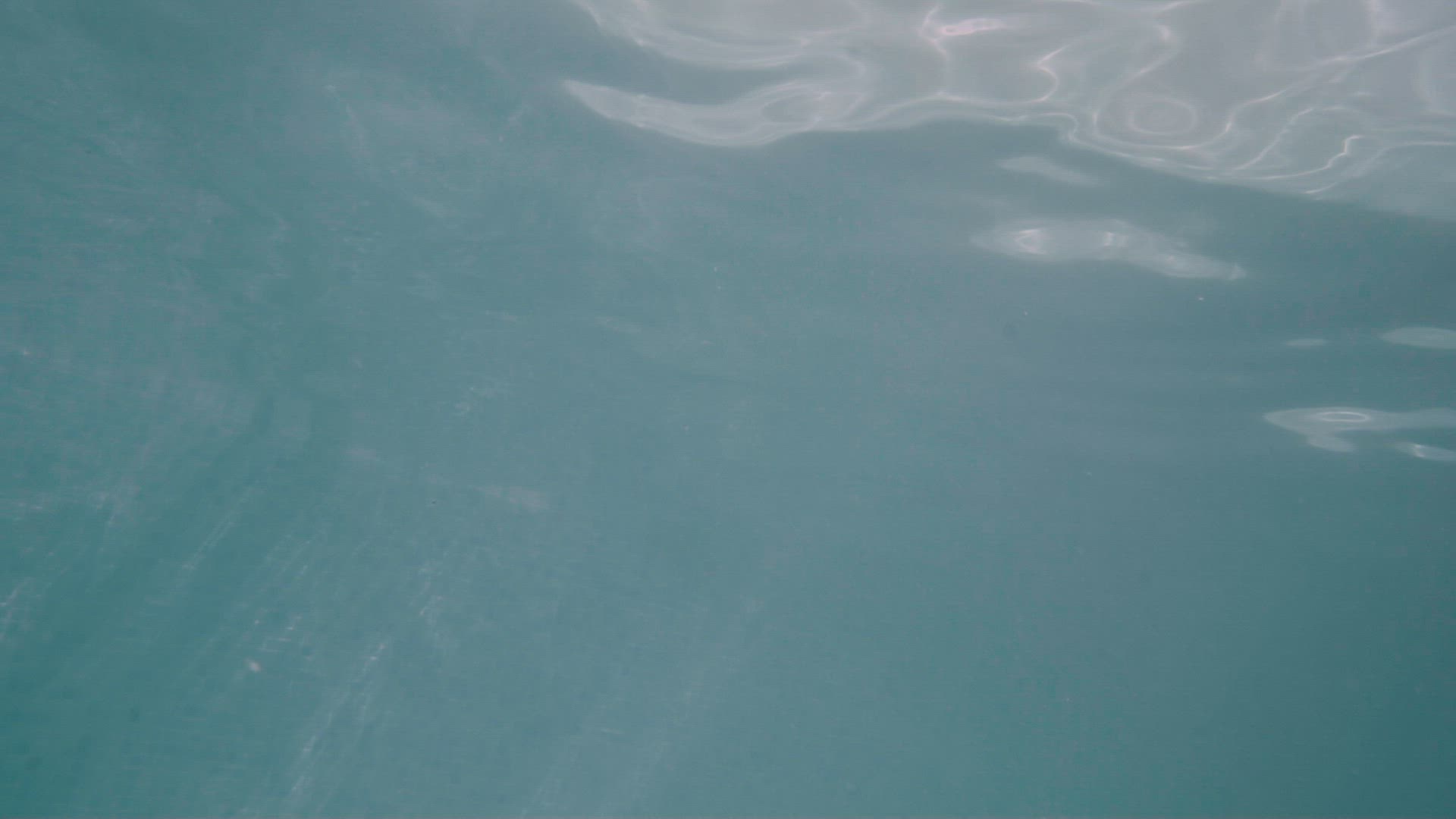 Slow motion shot of a bright swim ring in the deep blue swimming pool