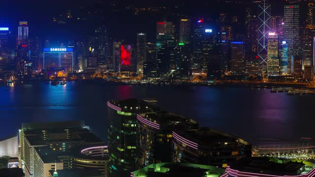 hong kong night light city scape and water traffic 4k time lapse from hong kong