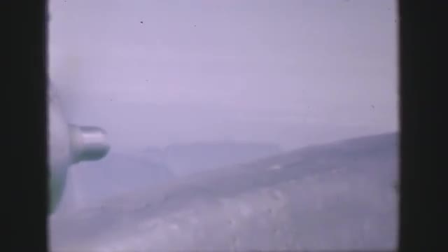 > 1949: Propeller airplane engine window view flying high into clouds classic travel. NEW YORK CITY