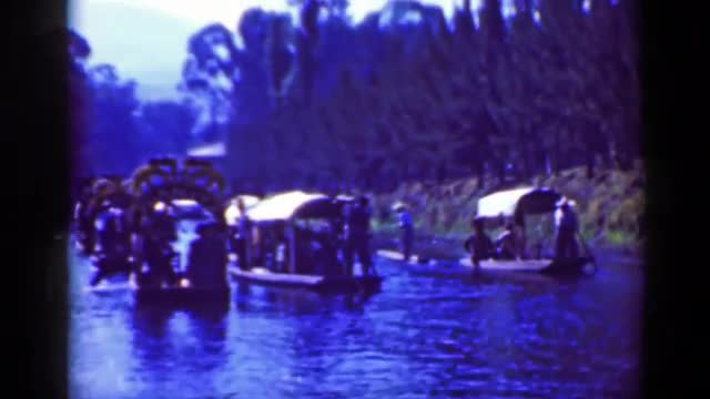 > 1951: Merchant widowed women selling flowers river boat tourist cruise. CHISEC, GUATEMALA