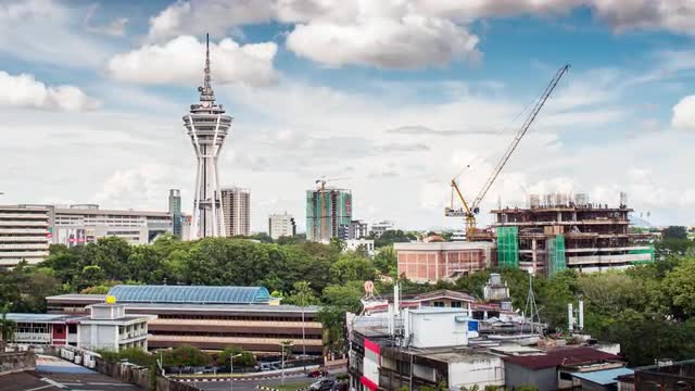Alor Setar, Malaysia, Kedah. Time Lapse. Top View to Menara at Day Light With Clouds. Aman Central. Construction