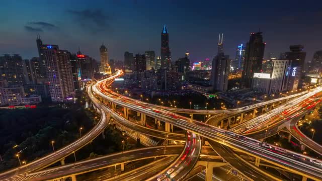 sunset traffic interchange crossroad 4k time lapse from shanghai