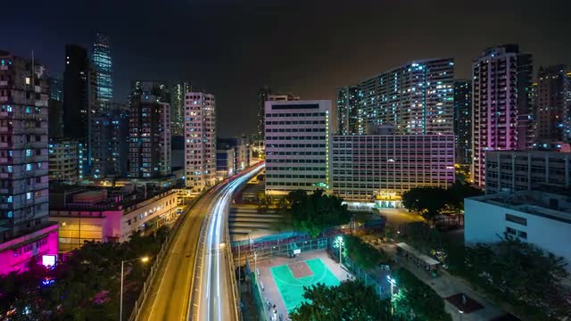 > colored night light hong kong city traffic street 4k time lapse china