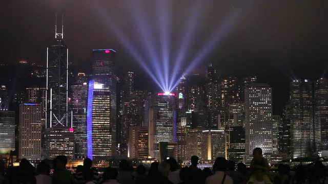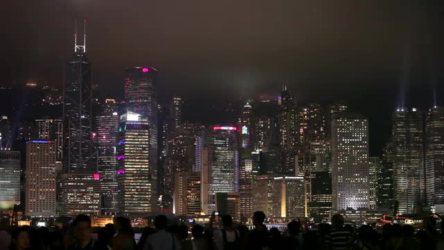china hong kong night light city buildings panorama 4k time lapse