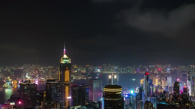 china hong kong night light city panorama high building 4k time lapse