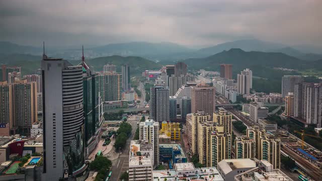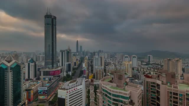 china day till night sunset shenzhen city roof top panorama 4k time lapse